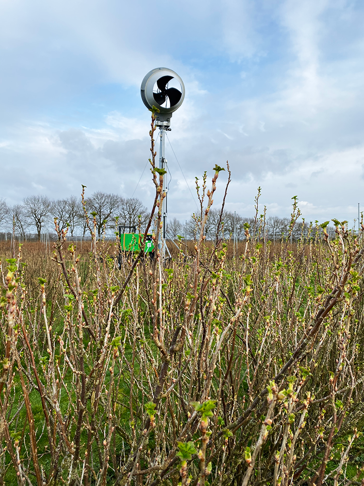 Geïnspireerd door deze uitdaging ontwikkelde Zinger Mechanisatie de ZIBO Nachtvorstventilator; een imposante axiaal-ventilator die een oppervlakte van drie hectare effectief tegen vorst kan beschermen.