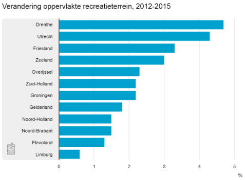 Tussen 2012 en 2015 is er in Nederland 11 duizend hectare aan open natuurlijk terrein bij gekomen. Vooral het areaal open nat natuurlijk terrein nam toe. Ook groeide de bebouwde oppervlakte verder, vooral door een toename van woon- en bedrijfsterrein.