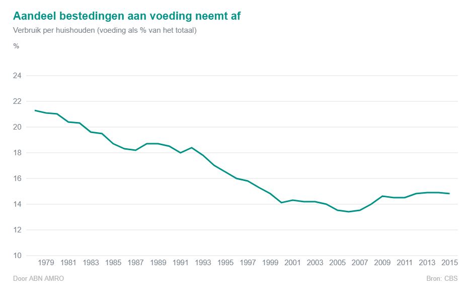 Het terugdringen van voedselverspilling bij consumenten en retailers is een andere complexe opgave. In de Westerse wereld besteden consumenten een relatief klein deel van hun inkomen aan voedsel. Zo zijn in Nederland de bestedingen aan voeding ten opzichte van de totale bestedingen de afgelopen 35 jaar met een derde afgenomen.