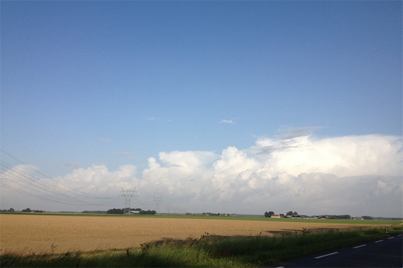 Het ontstaan van de eerste stapelwolken, omgeving Elburg-Dronten, maandagochtend 12-08-2019, 08:00u