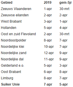 De gemiddelde zaaidatum is 7 april, twee dagen later dan het vijfjarig gemiddelde.