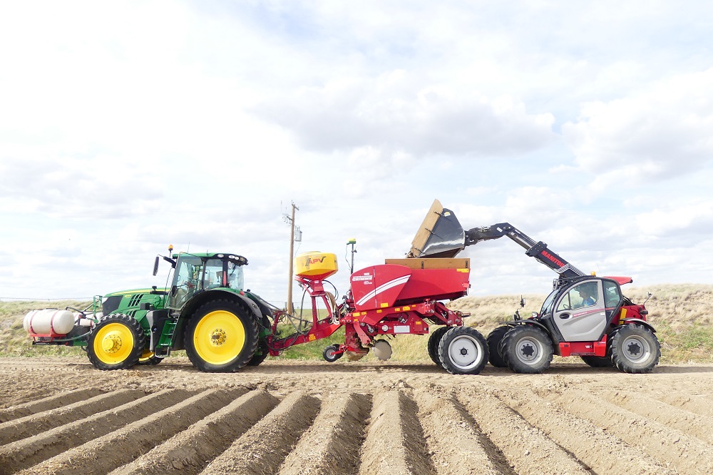 Tijdens het poten wordt een behandeling tegen rhizoctonia en luizen bijgevoegd en droge kunstmest. Voor de rugopbouw maken ze gebruik van een Baselier frees, omdat deze een goede beveiliging tegen stenen heeft.