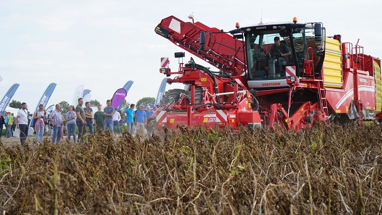 Het beursthema ‘Kennis maken, kennis delen’ was ook op veel andere plaatsen terug te vinden, zoals bij de diverse stands en presentaties. Onder meer tijdens de rooi- en loslijndemonstraties plus diverse handling demo’s op de velden, het erf en in de gebouwen van proefboerderij Westmaas. Ook besloeg het beursterrein een groot aantal bedrijfsstands en presentaties van diverse machines en werktuigen voor de teelt en bewaring van het aardappelgewas. De rooidemonstraties vormden traditioneel weer de publiekstrekker van de demodag. De hier gepresenteerde rooiers haalden de aardappelen van het ras Challenger allen keurig netjes uit de grond. Gelet op de droge weersomstandigheden, het perceel is niet beregend tijdens het groeiseizoen, kwam een verrassende hoge opbrengst naar boven van gemiddeld 60 ton per hectare.