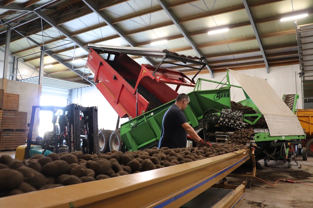Een medewerker van Geraats BV is op het moment van het interview druk bezig de Fontane frietaardappelen in te schuren. “Wij zijn écht gespecialiseerd in de aardappelteelt en telen vijf aardappelrassen en ook nog mais voor CCM. Wij hebben ook eigen uitgangsmateriaal en telen dus pootgoed.” In 2018 werd de huidige nieuwe bewaarplaats gebouwd door naast de bestaande hal voor vierduizend ton twee nieuwe bewaarhallen te zetten voor in totaal tienduizend ton opslag. Alles wordt losgestort opgeslagen bij Geraats BV. De vijfde oogst wordt momenteel dus ingeschuurd.
