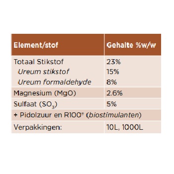 Nutrino Pro is een nieuwe stikstofbladmeststof die door Holland Fyto, een samenwerkingsverband van onafhankelijke Nederlandse toeleveranciers in de land- en tuinbouw, dit jaar op de markt wordt gebracht. De bladmeststof onderscheidt zich door zijn hoge efficiëntie, maar ook vooral omdat het naast stikstof, magnesium en zwavel ook de twee complementaire biostimulanten Pidolzuur en R100 bevat.