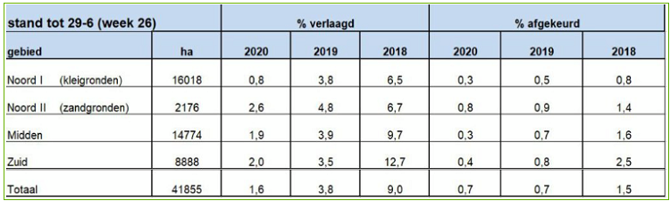 Een aantal percelen is imiddels al voor de tweede keer gekeurd. De luizendruk is de afgelopen week wat afgenomen, maar de situatie blijft ongunstig.