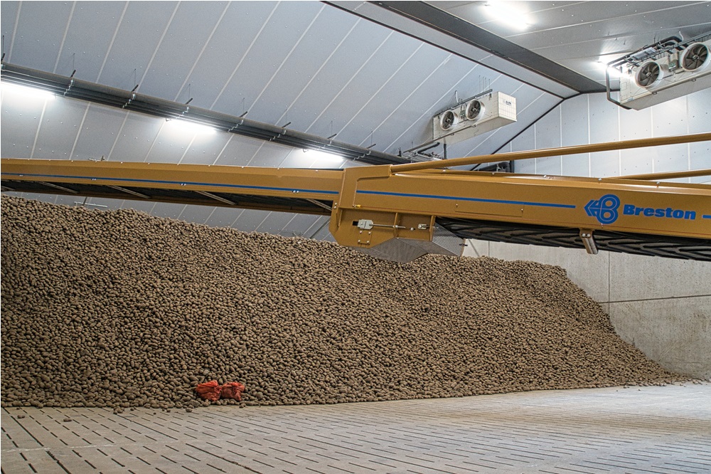 De teler beschikt nu over zo’n 13.500 ton bewaarcapaciteit. Een forse vooruitgang ten opzichte van de drieduizend ton waar het bedrijf op Goeree-Overflakkee voor 2022 over beschikte. De eerste vijf cellen met bulkbewaring werden in 2020 in gebruik genomen. In 2022 kon de gehele capaciteit van de bewaring worden benut. Op dit moment worden er Agria’s, Innovators, eerstejaars plantuien, pootuien en zaaiuien opgeslagen. Daarnaast komen er binnenkort nog rode uien en zoete aardappelen in. De bewaring wordt ten eerste gebruikt voor bewaring van producten van het akkerbouwbedrijf van Van Peperstraten zelf. Ruimte die overblijft in de bewaring wordt via bemiddelingsbureau PPA ingevuld met producten van derden.