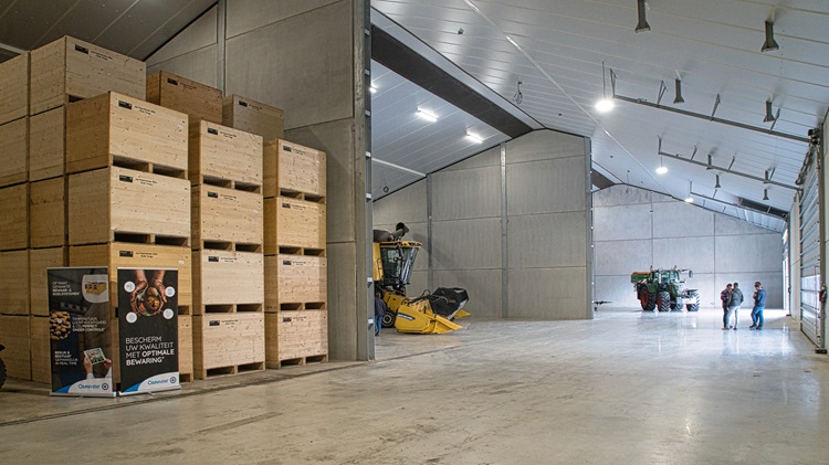 Van Peperstraten verbouwt op ongeveer 250 hectare aardappelen, uien, granen, suikerbieten, winterwortelen en doperwten. Rond 2014 startte de akkerbouwer met zijn plannen voor een nieuwe bewaring, die om de bestaande bewaarschuur heen moest worden gebouwd. Deze bewaarschuur, geschikt voor zowel kistenbewaring als los gestorte producten, werd niet zomaar een bewaarschuur. “We wilden gebruik maken van de nieuwste noviteiten. We telen veel Agria’s, dus wilden sowieso condensdrogen met een volledige roostervloer. Daarbij wilden we ook zo duurzaam mogelijk werken. Zo hebben we bijvoorbeeld 5.400 zonnepanelen op het dak liggen”, vertelt Van Peperstraten.