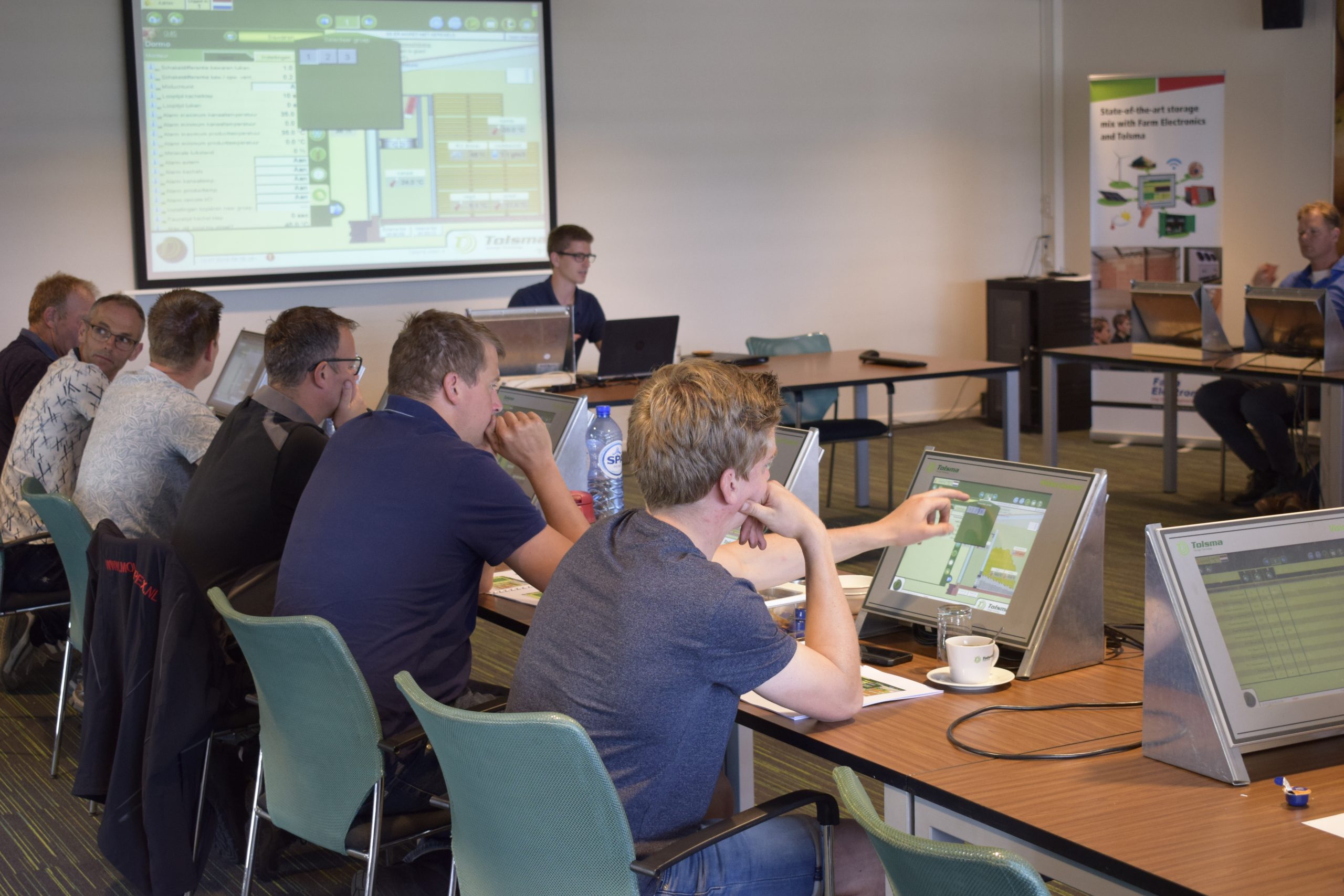 Akkerbouwers verzamelden zich voor de bewaartechniektraining van de Tolsma Vision Control-systemen