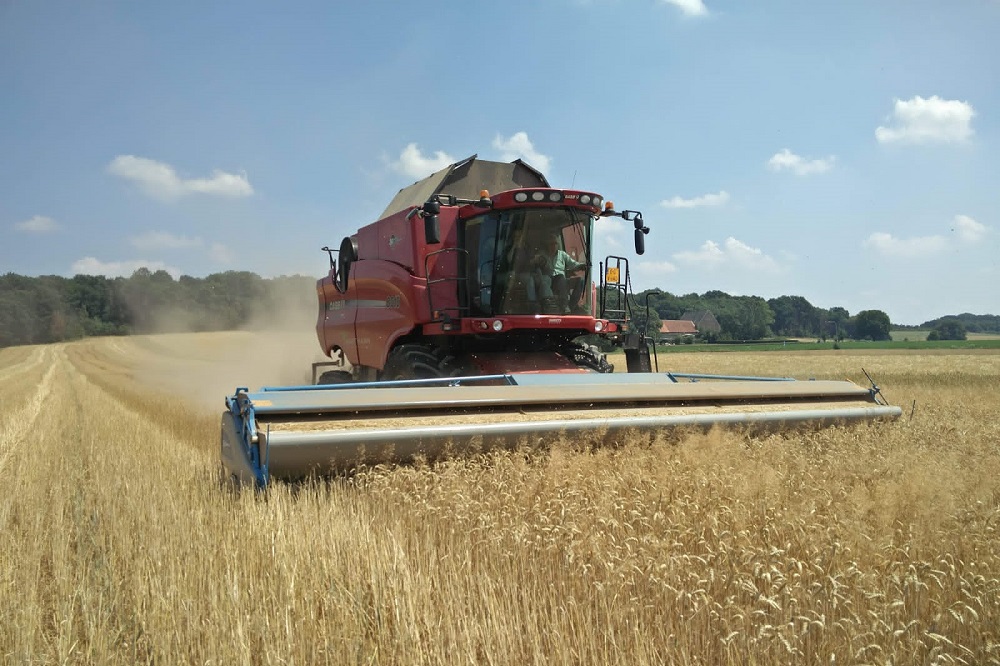 In gesprek met gebiedscoördinator Gerard Muskens is de arenstripper op het pad van Hartmann gekomen. “We zochten naar een oplossing om de graankorrel te oogsten en toch dekking op het land te houden.” Met arenstrippen, dors je de korrel, maar laat je het stro en de aar staan. “Van de techniek had ik weleens gehoord, maar op het vaste land in Europa wordt deze machine niet gebruikt. We kwamen in Nederland één arenstripper op het spoor, die bij een loonwerker in Rotterdam in de schuur stond. Die bleek versleten en qua capaciteit onvoldoende voor de hectares die wij willen oogsten.”