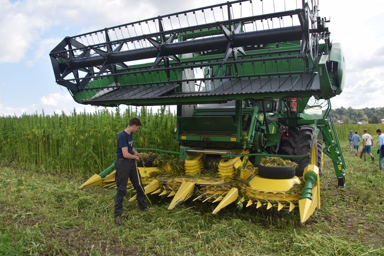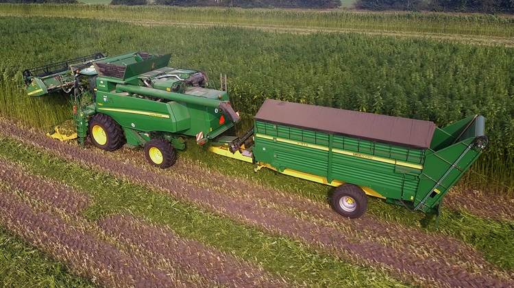 In tegenstelling tot de demonstratie in Nederland, was het hier wel de Double Cut-combine die kwam oogsten. Het was een machine van HempFlax uit Oude Pekela in Nederland. Gerard Hosper is business developer bij het bedrijf dat ondertussen 25 jaar ervaring heeft in de oogst en verwerking van hennep. Hij vertelt dat John Deere de machines op fabrieksniveau maakt en verdeler GroeNoord bouwt ze om. “Samen met HempFlax vormen we CANN BV. Dat staat voor Crop Ability North Netherlands. Er lopen momenteel zo’n vijftien machines in Duitsland, Polen, Oezbekistan, Turkije, de VS en bij een universiteit in Roemenië.”