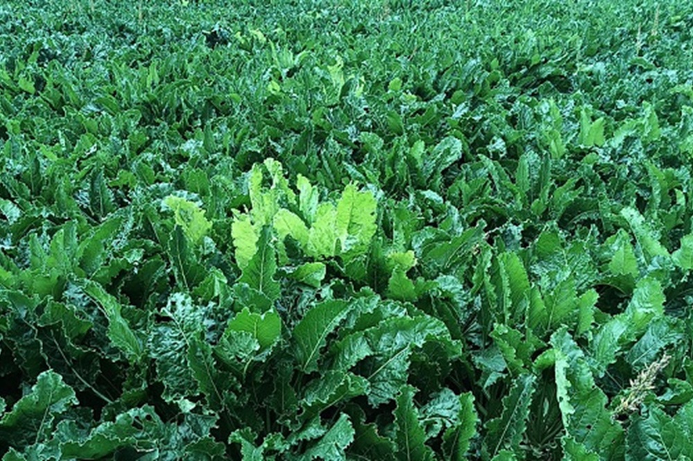 De symptomen van rhizomanie, de zogenaamde blinkers, zijn weer te zien in de bietenpercelen. De lichtgroene, zieke planten vallen op tussen de gezonde bieten.