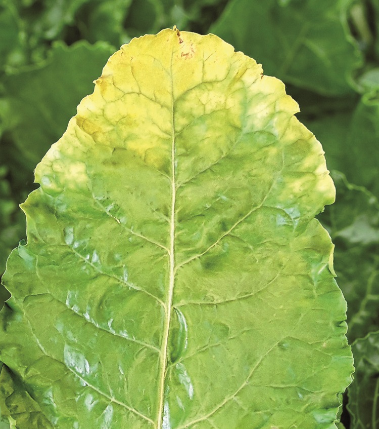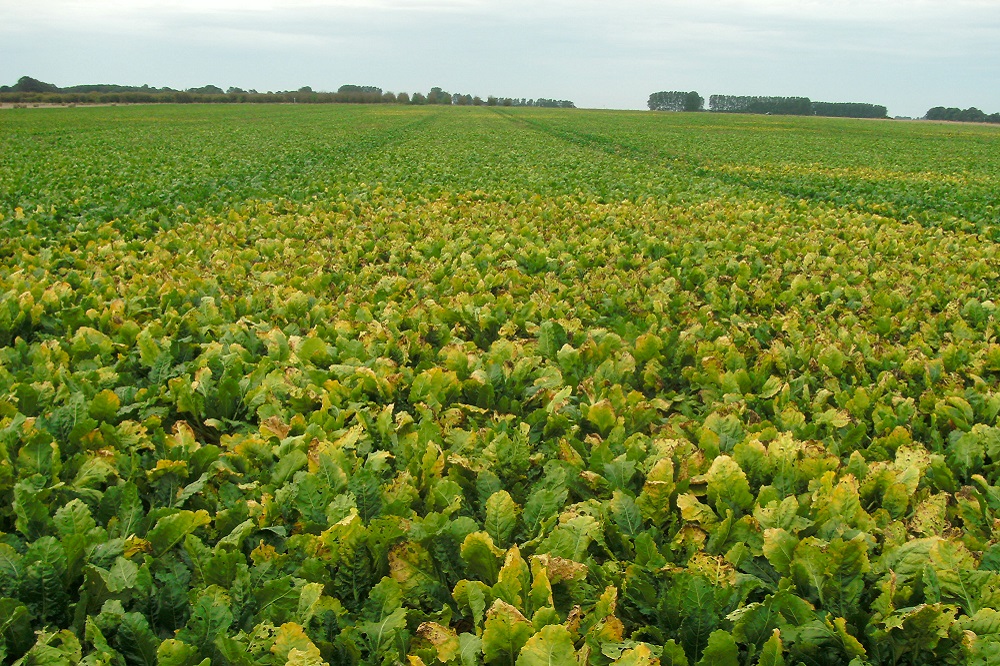Wanneer een suikerbietgewas besmet is met het vergelingsvirus, kan de teler te maken krijgen me