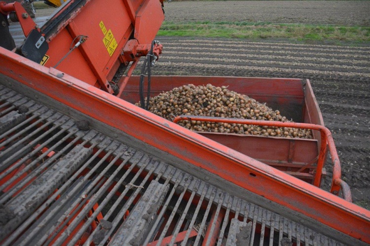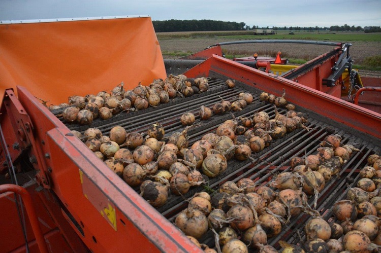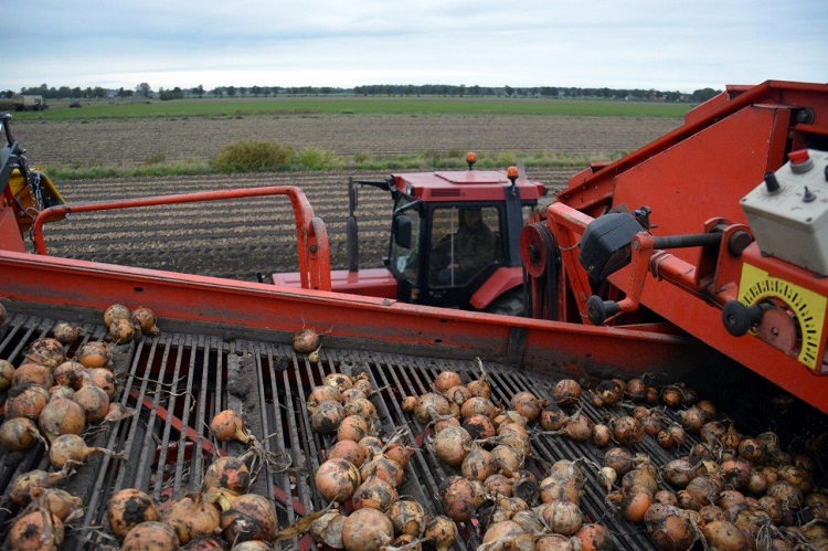 Firma Lievaart Crops uit Rutten heeft maandag met getrokken Grimme DL 1500-uienrooier de banen met uien van een perceel in de buurt van Sint Nicolaasga van het land gehaald. Het akkerbouwbedrijf had haast met de club. Eerder werd vier meter van het land gestolen.