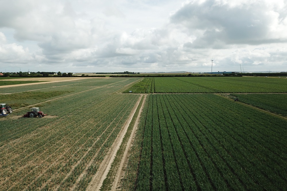 Het teeltjaar 2021 was koud, nat en donker. De meeropbrengst met fertigatie, toegediend op ‘hoog EC-gehalte’, ten opzichte van enkel kunstmest strooien en beregenen, bedroeg toen slechts vijf ton. In de praktijk zagen we meeropbrengsten van netto veertien ton bij onze klanten. Uit de proeven van 2021 werd verder duidelijk dat de opbrengst van de teeltwijze met vier rijen op één bed, dus twee duo rijtjes die gezaaid zijn met een breed-zaai kouter, een hogere opbrengst geeft dan bedden die ‘scherp’ met vijf rijen zijn ingezaaid. Fertigatie vergroot die opbrengstverschillen. Ook bleek dat in dit natte jaar de fertigatie op ‘hoog EC’ meer opbrengst geeft dan de reguliere fertigatie in combinatie met een bladmeststoffen gift. Er wordt op diverse proefbedrijven onderzoek gedaan naar de effecten op verzilting van de bodem op langere termijn, bij de inzet van water met een hogere zoutwaarde.