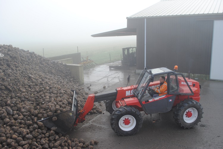 Op een mistige ochtend in januari levert Langestraat weer een vracht voederbieten af voor een melkveehouder.