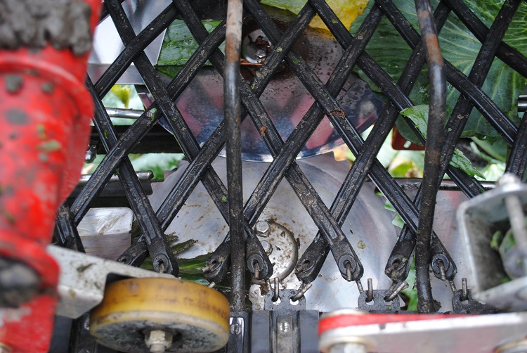 Aan de cruciale mechanische snijtechniek is nog weinig veranderd. “Belangrijk is dat als je kool snijdt, je de waslaag intact houdt. Met de duim kun je die laag er al afhalen.” Na de snij-unit gaat de kool langs de reinigingsrollen. Op de sorteertafel worden losse bladeren weggehaald. De kool wordt vanaf de band in de kist gelegd. “Overpakken van de gesneden kool en voorzichtig in een kist leggen. Met een snelheid van 2 tot 2,3 kilometer per uur gaat dit eigenlijk megahard.”