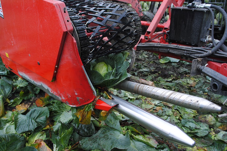 De zeer dicht bij de grond geplaatste opname-unit en de productvriendelijke transportband van het nieuwste model kooloogstmachine zorgt er voor dat de geoogste kool met een zeer kleine valhoogte de kist bereikt. Door de zeer geringe mechanische belastingen kunnen bewaarperiodes tot zes maanden gerealiseerd worden. En dat is ook een nadrukkelijke wens vanuit de Nederlandse markt. “We merken bovendien dat er groei zit in vollegrondsgroenten. Kool is een gezond product en de prijzen zijn bovendien goed”, vertelt Jan Bouma, vertegenwoordiger van Grimme.