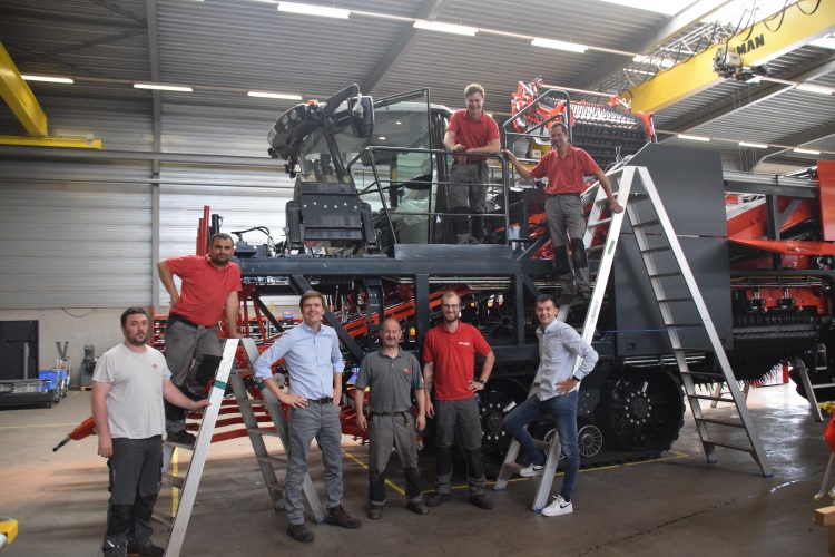 Een persbericht dat meedeelde dat de tweede generatie van de ZKIV-wortelrooier het daglicht zag, vormde de aanleiding om het productieproces in detail te gaan bekijken. Florin Decoster (marketing), Thomas Decan (productieverantwoordelijke) en Vincent Holvoet (productmanagement) maakten tijd om ons wegwijs te maken. Decoster legt ter introductie uit dat het productieproces van de ZKIV afwijkt van dat van de aardappelmachines. Voor die laatsten worden de kleinere onderdelen eerst in elkaar gezet in de voormontage waarna ze naar de grote hal komen waar alles op chassis gezet wordt in zeven stations. Bij de ZKIV wordt alles stationair gedaan op één locatie.”