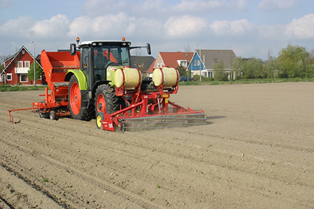- Het middel gelijkmatig over het land spuiten en vervolgens inwerken. Ook kan het tijdens de grondbewerking voorafgaand aan het poten worden toegepast.