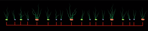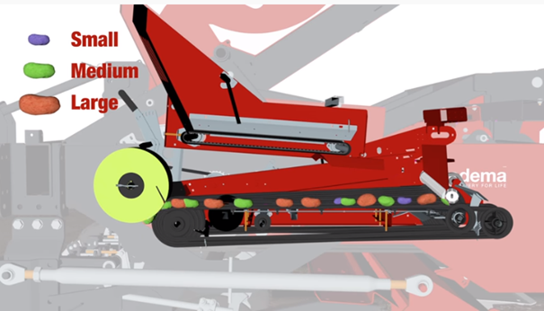 Het trilmechanisme onder de toevoerende pootsnaren zorgt voor een mooie verenkeling van de pootgoedknollen. De V-vorm van de pootsnaren is in te stellen op basis van de gemiddelde grootte van het pootgoed. Vlak voor de verticale afstort in de poot-voor zijn de poters kort vastgeklemd door een schuimrubberrol. De rol draait iets langzamer dan de pootsnaren en hierdoor zijn de aardappelen op de pootsnaren licht gestuwd, waardoor alle knollen mooi aansluiten. Langere aardappelen zijn iets langer vastgehouden, waardoor de ideale groeiruimte voor elke aardappel is bereikt en er een optimale stengelverdeling is. “Dubbelen en missers behoren ook tot het verleden” voegt Herman Schlepers toe.
