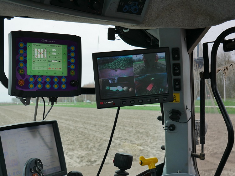 De bedieningsterminal geeft in één oogopslag de belangrijkste indicatoren van het pootproces weer. De RTK besturing van de trekker is via TruTrak direct gekoppeld aan de meesturende achterwielen van de planter. De stuurcorrecties op de trekker zijn dus direct nagevolgd door de achterwielen van de planter, zonder dat er vertraging optreedt, met als resultaat kaarsrechte rijen.
