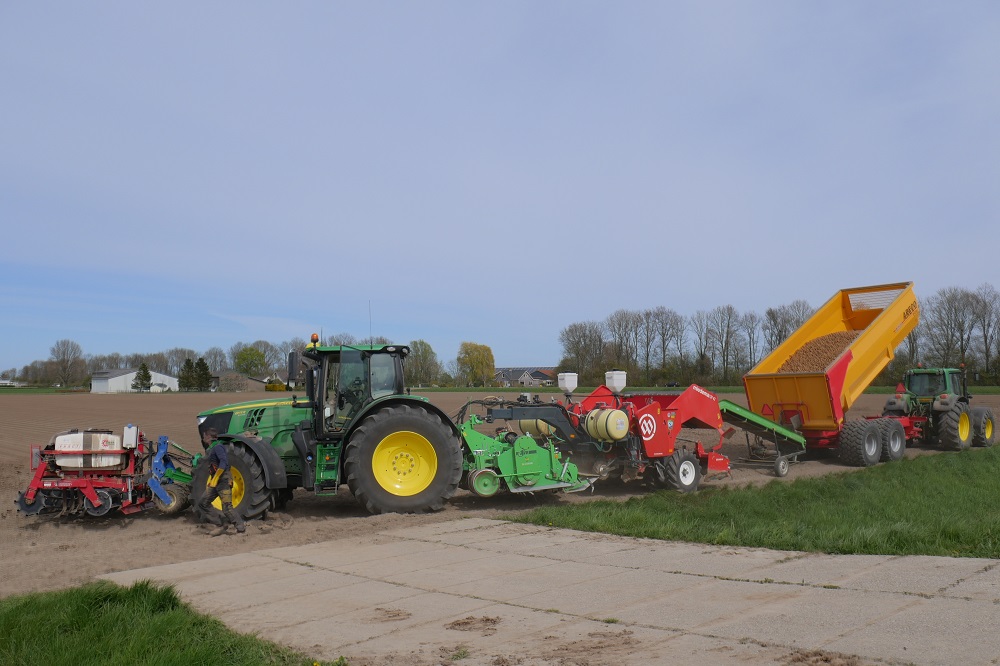Peter de Regt van akkerbouwbedrijf Den Oude Heuvel in Dronten pootte afgelopen zaterdag een perceel Regina tafelaardappelen. De inzet van rijenbemesting en variabel poten is de eerste aanzet om de opbrengst te optimaliseren. De afzet loopt via Nedato onder de teeltvoorwaarden ‘Planet Proof’ en ‘Global Gap’, waarvoor het bedrijf gecertificeerd is.