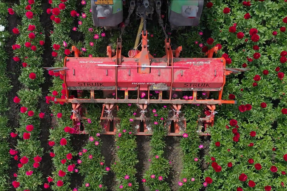 De vraag voor de hogere vrije doorgang is in de pioenrozen ontstaan. Ook in de biologische peenteelt, vooral in Duitsland, is dit een voordeel. “De doorontwikkeling betekent dat we heel lang ook door de hogere gewassen heen kunnen totdat die helemaal dicht gegroeid is”, legt Wichard Struik van Struik Holland uit.