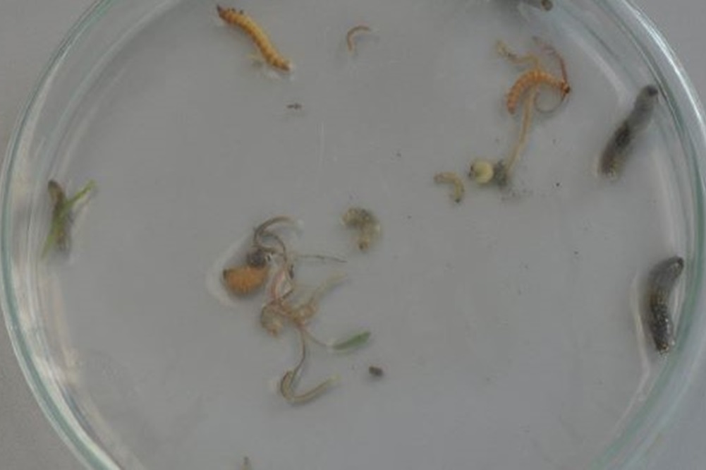 Door grondmonsters te nemen en deze op te spoelen, komen op het perceel aanwezige bodeminsecten tevoorschijn.