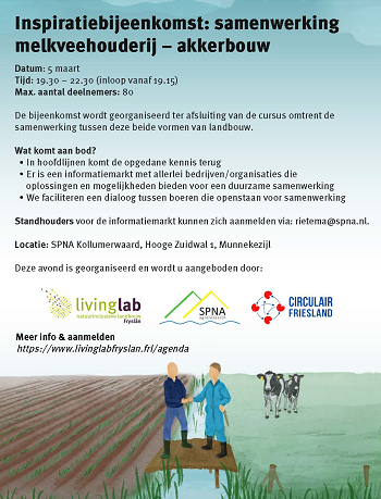 Op 5 maart van 19.30-22.00 er een inspiratiebijeenkomst georganiseerd als afsluiting van de 5 delige cursusreeks: Samenwerking Melkveehouderij – Akkerbouw bij SPNA in Munnikezijl.