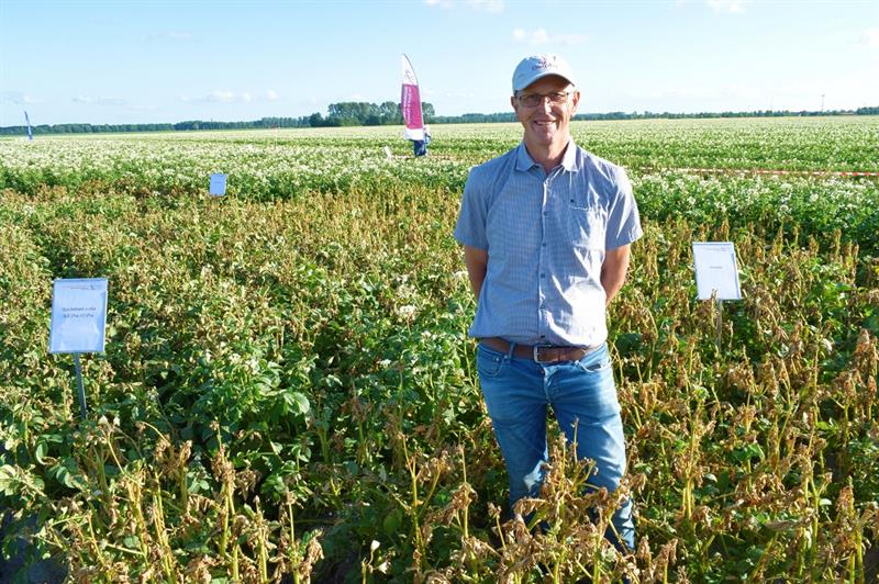 Ook op het praktijkperceel naast de proefvelden teelt Groen hoogwaardig pootgoed. Als ook daar het loofdodingsproces – volgens de traditionele methode, dus met Reglone – is afgerond, dan volgt daar de belangrijkste vraag: wat is de opbrengst dit seizoen? Groen is ook daarover voorzichtig optimistisch: “Opbrengsten zijn voor een proefveld niet relevant, maar voor het praktijkperceel, dat daaromheen ligt, verwachten we rond de veertig ton per hectare uit te komen. Daarmee moeten we als telers voor dit seizoen tevreden zijn. We zien dit jaar duidelijk dat de groei van de plant zowel boven- als ondergronds lekker is gegaan. Zeker in vergelijking met vorig jaar.”