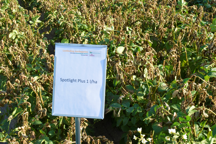 Maar de meeste aandacht gaat natuurlijk uit naar de middelen die als alternatief zouden kunnen dienen voor Reglone en de werkzame stof diquat die dit middel bevat. “We hebben gekeken naar de effecten van (experimentele) zuren. Dat brand het blad snel weg, maar kan ook de knol beschadigen. Testen met hulpstoffen zoals Quickdown, Ecostyle en Spotlight Plus laten echter hoopvolle resultaten zien. We hopen daar dan ook mee verder te kunnen in de komende teeltjaren die we zonder Reglone door zullen moeten komen.”