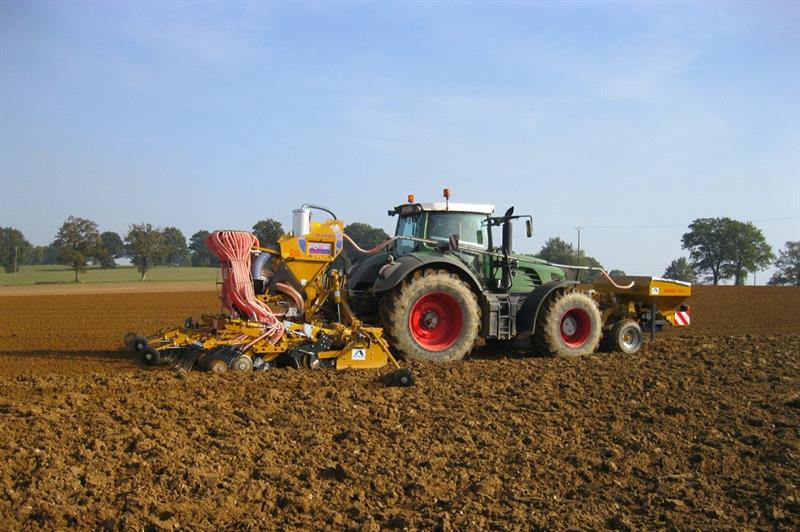Dekker stipt ook de mogelijkheden van de Alpego DMAX rotorkopeg, maximaal belastbaar tot vijfhonderd pk, in combinatie met de AS4 600/48 pneumatische zaaimachine aan. Loonwerker Nils de Wit uit het Noord-Hollandse Berkhout had de eer om met deze verbeterde combinatie te werken. “De zaadjes worden met 48 schijven in geultjes van 12,5 centimeter gelegd. Bovendien wordt er nog extra zaad naar 48 extra zaaipijpjes gebracht. Met deze combinatie wordt de zaaiafstand 6,25 centimeter. Hierdoor kun je nog preciezer zaaien. Niet de standaard van 12,5 maar de helft minder. Volgens Dekker heeft deze noviteit zich het afgelopen seizoen bewezen. Nils de Wit zaait veel en kan nu met één computer twee aparte zaaiunits aansturen, specifiek ook voor blijvend grasland, waar veel vraag is naar het zaaien van verschillende mengsels.”