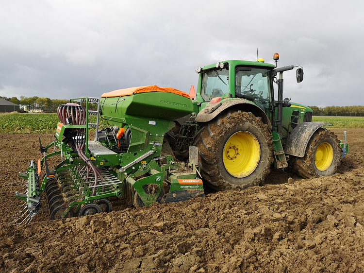 “Afgelopen najaar was het zeer nat”, stelt akkerbouwer GertJan Verhoef van de Johannahoeve in Numansdorp. Geen ideale zaaiomstandigheden dus. De pneumatische AMAZONE Centaya 3000 Super-zaaimachine gaat desalniettemin rustig door te grond en legt het zaad zeer nauwkeurig af.