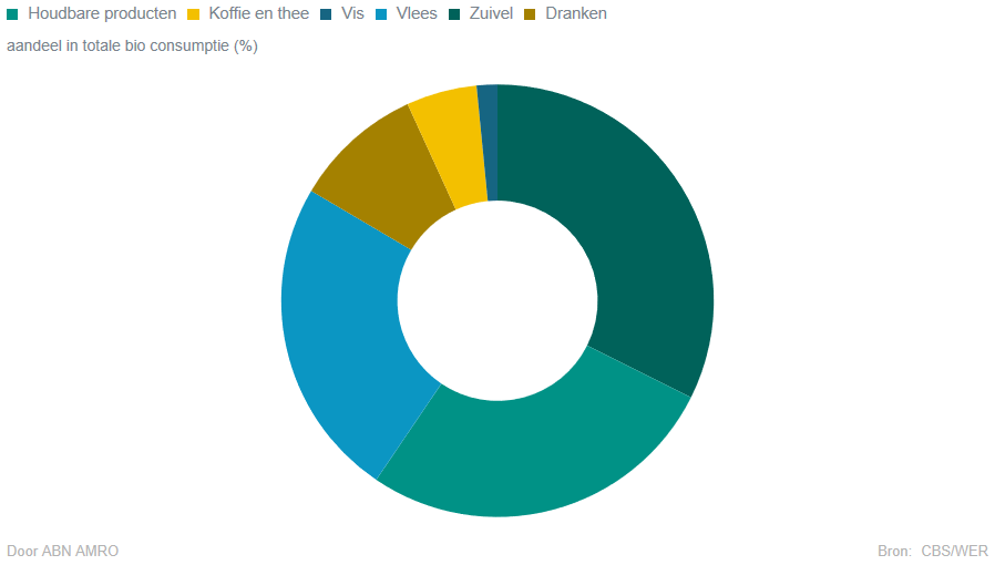 In 2017 besteedden Nederlanders 1,2 miljard euro aan biologische voeding. Nederlandse consumenten eten met name veel biologische AGF-producten (Aardappelen, Groente en Fruit). Bijna een kwart van de biologische bestedingen gaat naar deze productgroep. Daarnaast zijn biologische zuivel en biologisch vlees in trek.