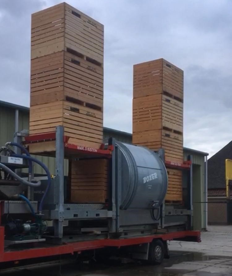 Rikkenberg vervolgt: “Het is nu een compacte machine die gemiddeld (afhankelijk van de vuiltegraad, red.) vijftig kisten per uur kan wassen: bij een pootgoedteler ligt dat getal iets hoger en bij een peenteler over het algemeen iets lager omdat daar meestal meer ‘vuil’ in de kist zit. De combinatie van een compacte machine met een zeer hoge capaciteit zorgt ervoor dat het concept van wassen, recirculeren en desinfecteren gewoon goed werkt en mede daarom is de Boxenwasser momenteel ook een enorm succes.”