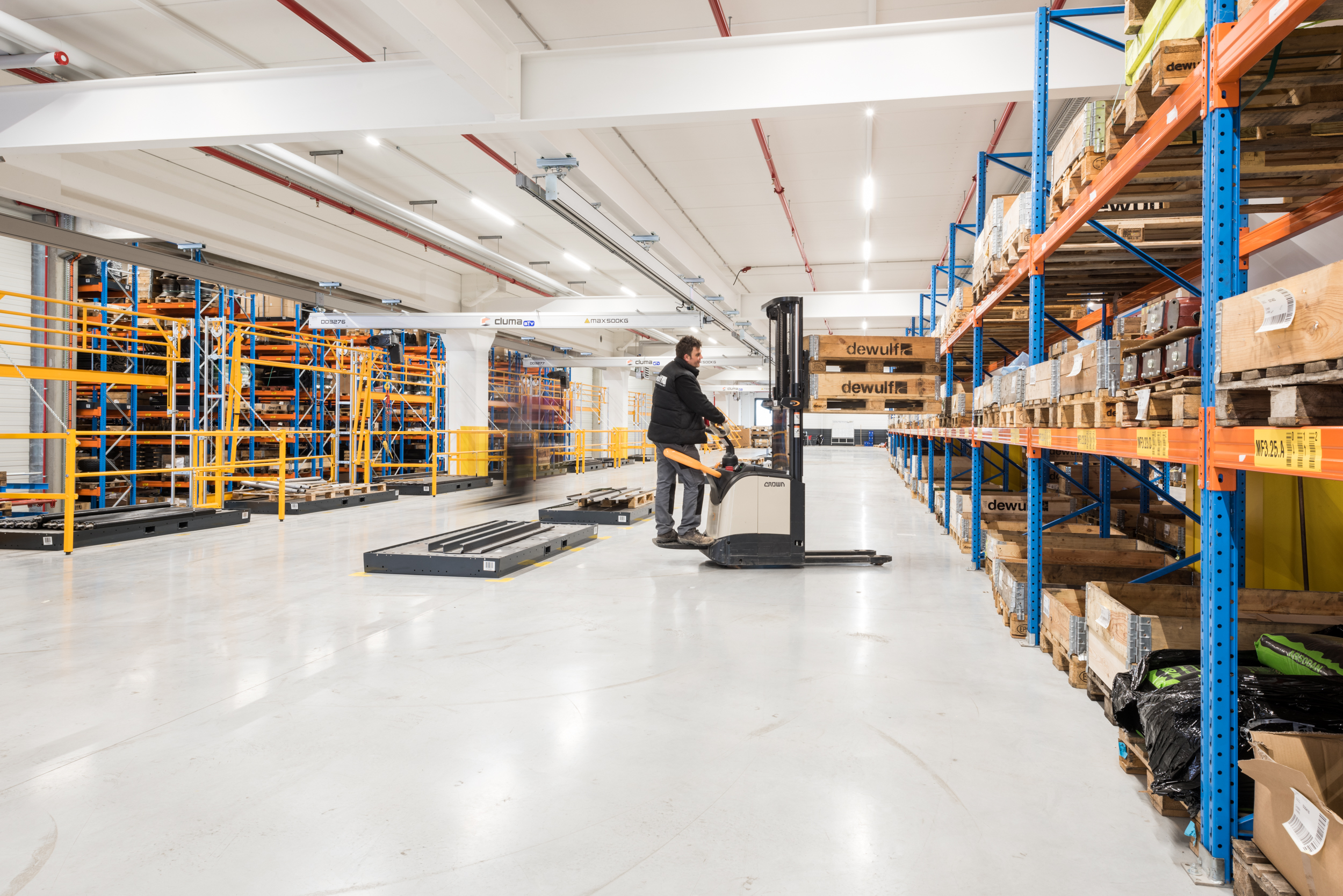Bij Dewulf maakt het logistiek centrum ook ruimte vrij voor verdere productiegroei. "Het streven is om ervoor te zorgen dat het tempo van de montage bepaalt wat er in het magazijn gepickt wordt. De processen in het magazijn worden daarvoor aangestuurd door gespecialiseerde WMS-software", aldus Wouter Criel. Hij is Supply Chain Manager bij Dewulf. Die software herrekent continu welke stukken er nodig zijn op basis van klantenorders en de stand van de montage. Ook worden die gegevens automatisch aan de logistieke medewerkers doorgegeven. "De benodigde stukken kunnen zo just-in-time aan onze monteurs bezorgd of voor transport klaargezet worden", vertelt hij. Een automatische integratie met de systemen van de koeriersdienst zorgt er ook voor dat alle zendingen extra vlot richting de klanten en dealers kunnen vertrekken. De machinefabrikant verwacht dat het softwaresysteem eind dit jaar volledig uitgerold zal zijn.