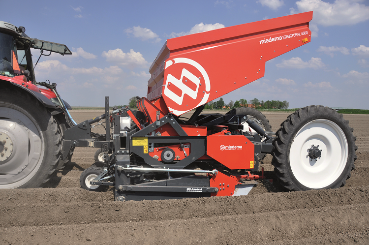 De MS 4000 is een getrokken 4-rijige snarenbedpootmachine en de grootste telg in de befaamde Structural-familie. Deze pootmachine is dé keuze voor telers die de hoogste eisen aan pootcapaciteit stellen. Dat komt dankzij haar aflegnauwkeurigheid en aardappelvriendelijkheid, in combinatie met een hoge rijsnelheid. De MS 4000 heeft een grote bunkerinhoud van 4 ton en biedt een ruime keuze aan opties. De machine op de beurs is uitgerust met een spuitset, Ferti-Flow – een traploos instelbaar banddoseersysteem voor kunstmest – en kooirollen, die met name geschikt zijn voor ruggenvorming op lichtere gronden.