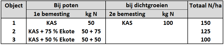 Afgelopen teeltjaar zijn er diverse proeven met Ekote uitgezet waarbij de onderzoekers diverse meststoffen tegen elkaar hebben afgewogen. De eerste van vier proeven die we onder de loep nemen lag in het Duitse Schwüblingsen. De proefopzet betrof een drietal objecten waarbij de Ekote-varianten lagere N-doseringen kregen dan de standaard KAS objecten. Ook in Duitsland was er sprake van enorme droogte in de zomer. Toch behaalde het Ekote-object (gecoate ureum 2-3M) een significant hogere opbrengst (+4,6 ton per hectare) dan het standaard KAS-object. De totaalopbrengst van alle objecten lag lager door de extreme droogte en er was achteraf gezien te weinig beregend.