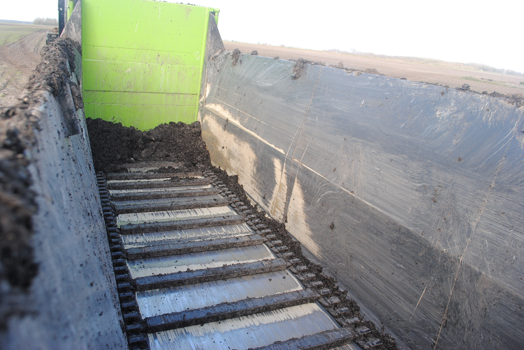 Simon Wieringa werkt ongeveer een week met de Fliegl KDS 140. “Op full speed rijden we per hectare zo 20 tot 25 ton compost over het land uit”, vertelt hij. De schotelstrooier voorziet in onze behoefte. “We waren al een poos op zoek naar een strooier. De prijs en het feit dat alles er op en aan zit, heeft voor ons de doorslag gegeven. We hebben de Fliegl een aantal dagen mogen testen en die gaat niet meer weg.” Aan de rand van een perceel in Siddeburen is de compost gestort. Met een kraan brengt zoon Tiemen de organische verbeteraar in de bak van de schotelstrooier. “We strooien veel”, stipt Simon Wieringa aan, “Natuurlijk is een gebruikte machine een optie, maar toch valt dat niet mee. Dan liever nieuw. Wat ons meteen opviel was dat de schotels het product mooi egaal over het land verspreiden. De Fliegl is een machine met een hoge capaciteit.”