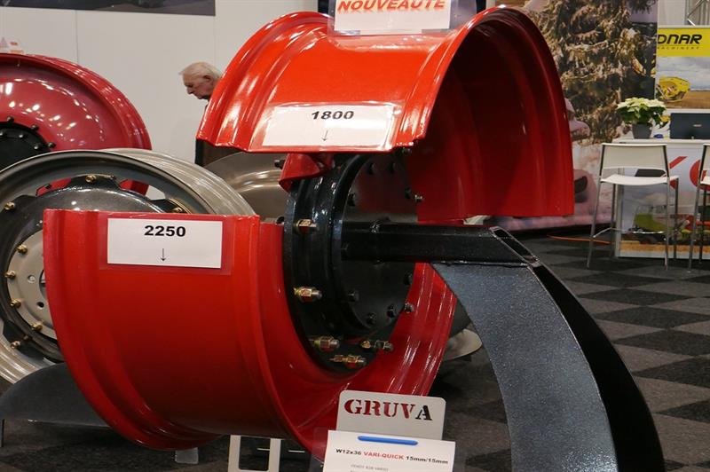 Gruva, de wielvelg specialist uit Cadzand, trok op Agribex de aandacht met de VARI-QUICK. Een systeem waarmee gemakkelijk tussen twee spoorbreedtes kan worden gewisseld. De wielschijf op de Agribex stand is geschikt voor op een FENDT 828 VARIO voor de spoorbreedtes 1800/2250.