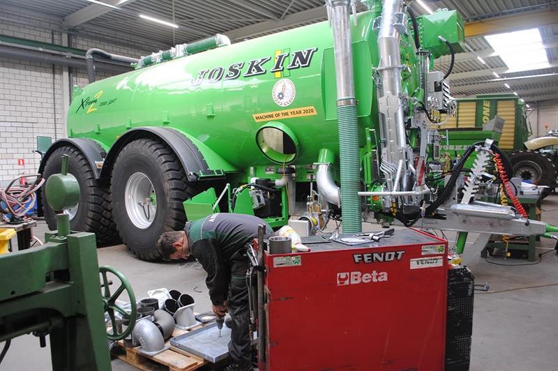 De werkplaats van Abemec in Veghel biedt een paar weken onderdak aan de indrukwekkende Joskin X-trm2 2000 DXT. De ‘supertank’ gaat rijden op de Brabantse akkers rondom De Zandpeel, het landbouwbedrijf van Erik Geene in Landhorst.