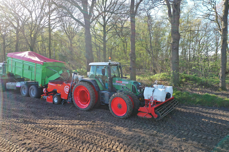 De pootmachine komt dit voorjaar zo’n vijf weken in actie om de 250 à 300 hectare te planten. Jan Berkers rekent voor het gemak met een capaciteit van zo’n 60 hectare per week. Bij optimale pootomstandigheden is 13 hectare per dag mogelijk.