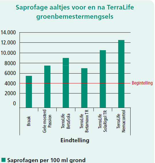 - een forse stijging van de nuttige saprofage aaltjes na TerraLife mengsels