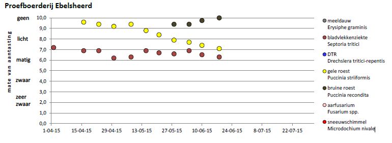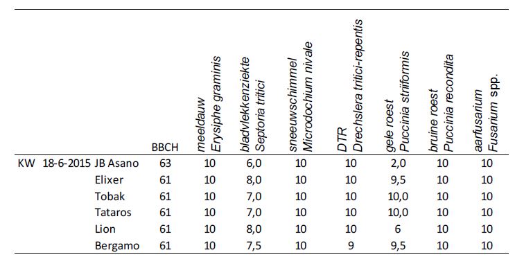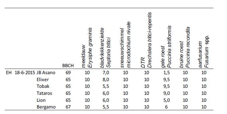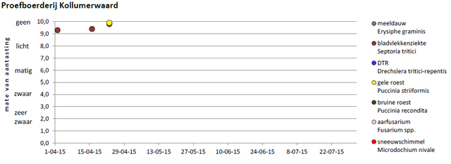 Gele roest is met name op de Kollumerwaard toegenomen. Septoria is vrij constant, er vindt geen echte