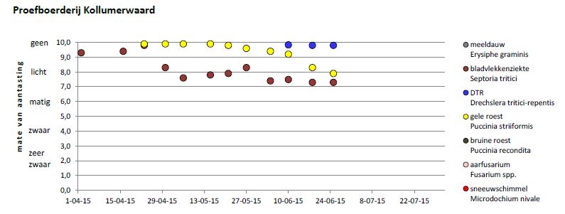 De waarnemingen zijn gedaan in een reeks rassen met verschil in resistentieniveau. De cijfers zijn afkomstig van de meest recente Rassenbulletins of, bij het ontbreken van informatie ervan, uit andere veldproeven. De waarnemingen zijn gedaan in een gewas waarin geen ziektebestrijding heeft plaatsgevonden.
